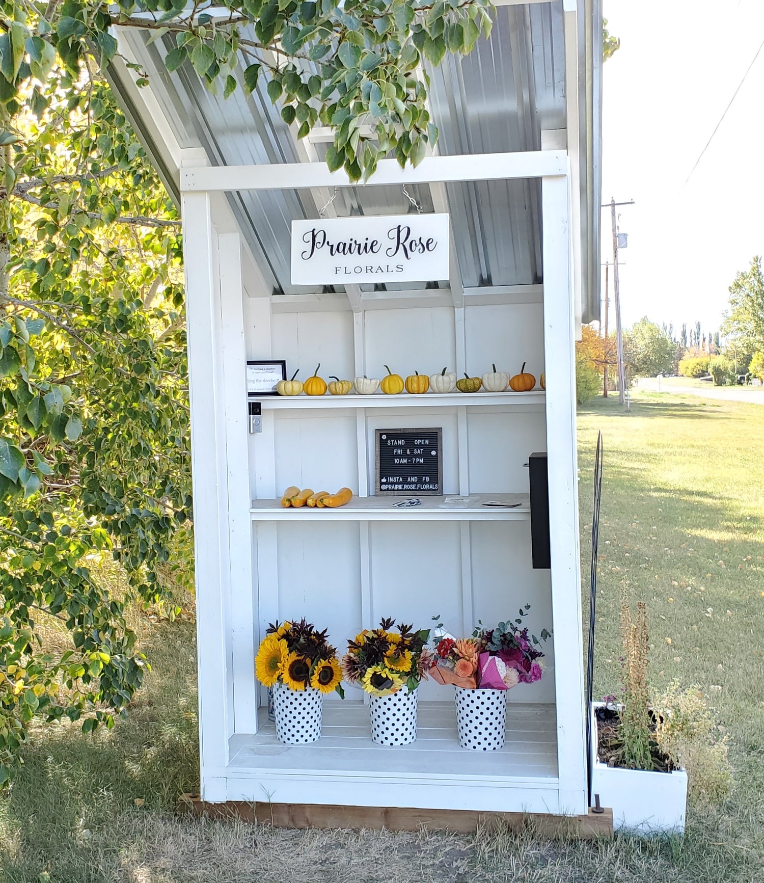- Bouquets at our roadside stand at the end of our driveway (118 4th Street, Stirling). I will be open on FRIDAYS from 10 am-5 pm. Purchases are on the honour system and can be purchased either by cash or through Shopify. Pickups during the week are an option but only in the evenings.